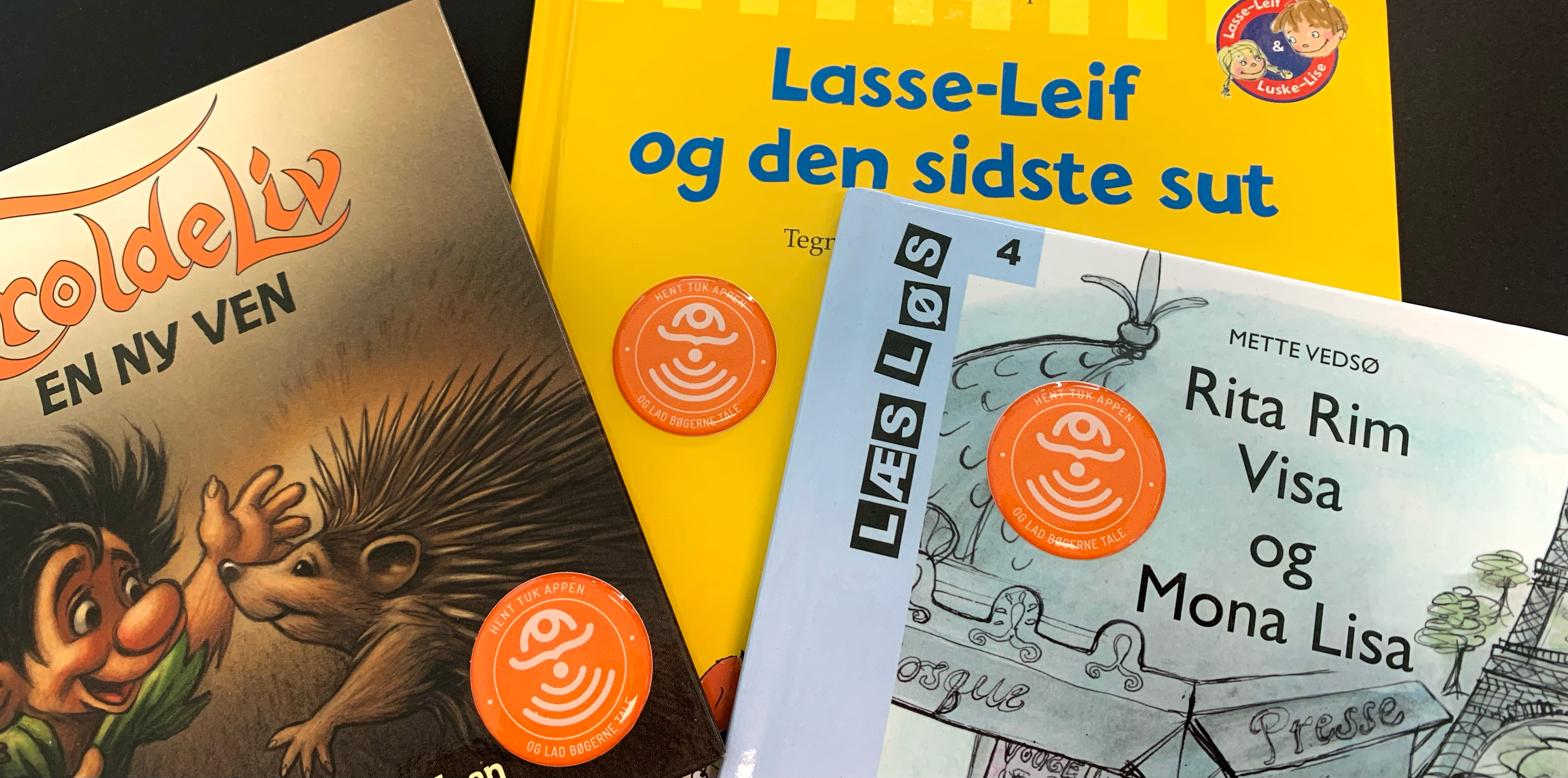 Når du køber en titel markeret med "Lyt og læs", indeholder den en trykt bog, lydbog og 2 TUK Tags.