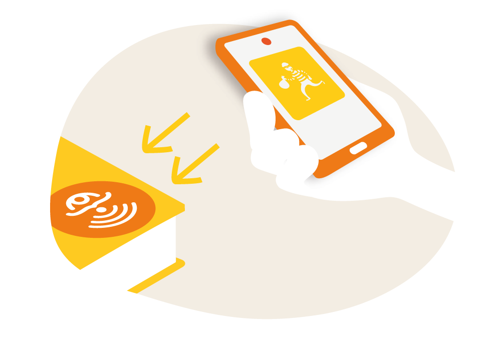 Et TUK Tag placeres på den trykte bog, og med TUK appen kan du gemme lydbogen i klistermærket.